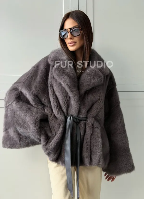 Мех данной шубы аукционная норка, цвет серый. Предлагается в размерах от 40 до 62 (oversize). Длина модели 60-65 см, что выгодно подчеркивает фигуру девушек. Эта модель идеально подойдет для девушек и женщин, предпочитающих роскошные натуральные меха.
