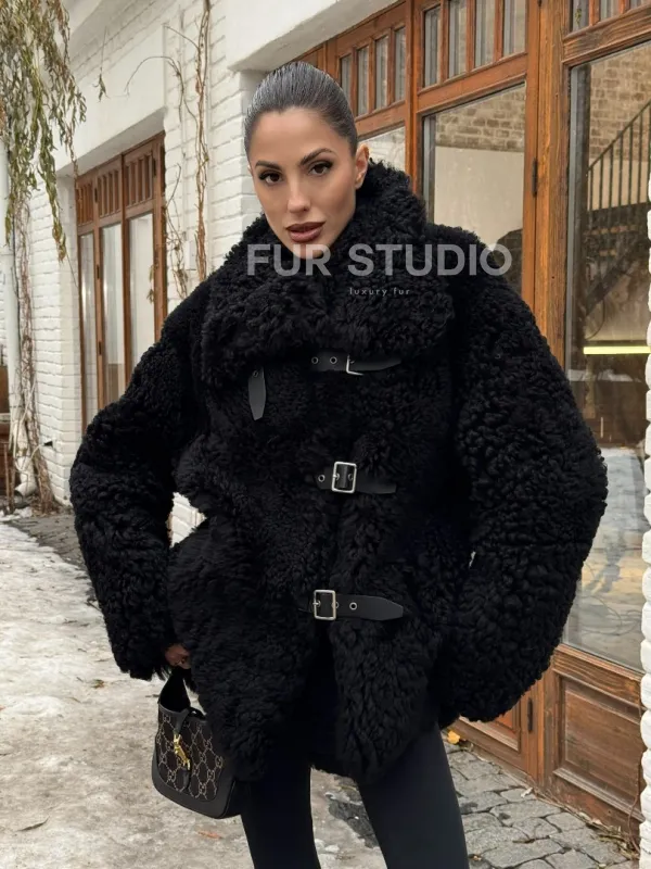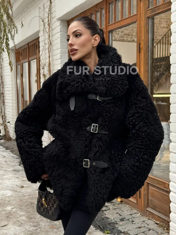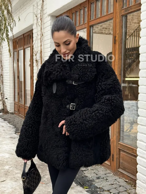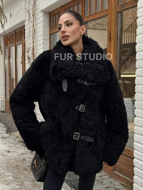 Черная дубленка средней длины из овчины тиградо " Дафлкот " доступна для покупки в нашем шоуруме Furs Studio в , а также предлагается удобная доставка во все города России. Обогатите свой гардероб этой дубленкой, которая прослужит вам многие годы, добавив немного роскоши в ваш повседневный образ.