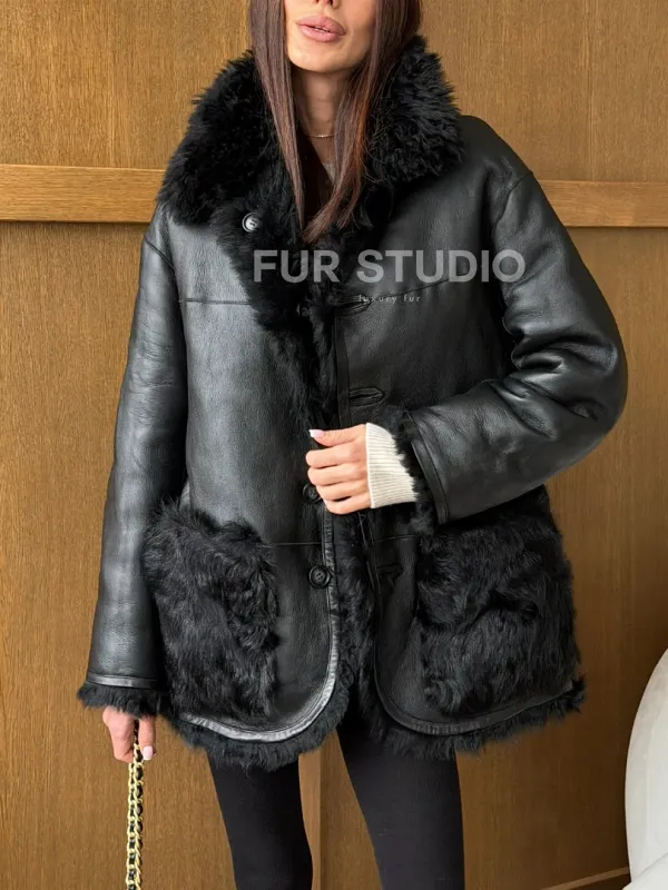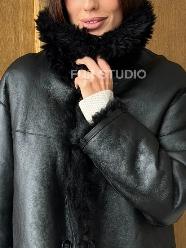 Черная двухсторонняя дубленка из меха тиградо доступна для покупки в нашем шоуруме Furs Studio в , а также предлагается удобная доставка во все города России. Обогатите свой гардероб этой дубленкой, которая прослужит вам многие годы, добавив немного роскоши в ваш повседневный образ.