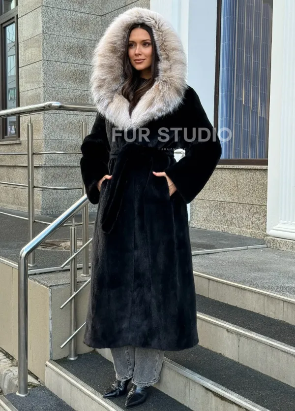 Черная норковая шуба с капюшоном из рыси доступна для покупки в нашем шоуруме Furs Studio в . У нас так же есть доставка во все города России. Добавьте немного роскоши в свой гардероб с этой шубой, которая будет служить вам многие годы.