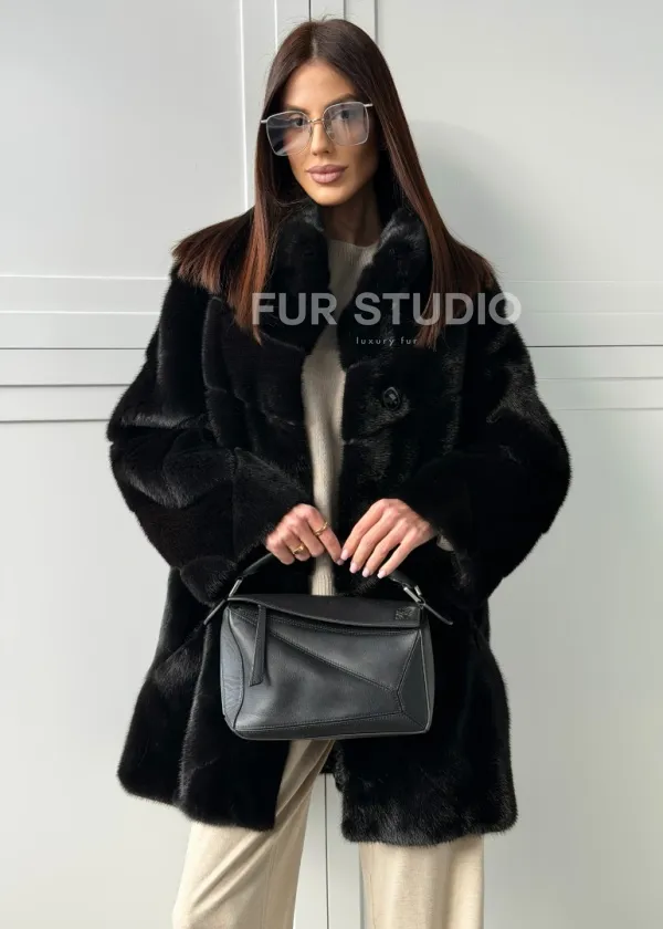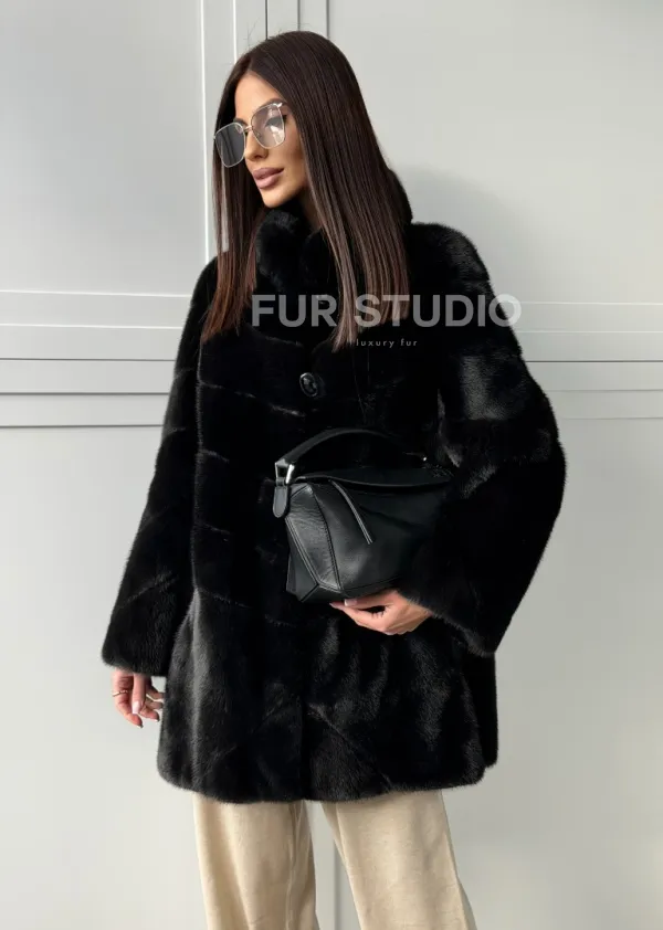Черная норковая шуба - стойка воротник доступна для покупки в нашем шоуруме Furs Studio в . У нас так же есть доставка во все города России. Добавьте немного роскоши в свой гардероб с этой шубой, которая будет служить вам многие годы.