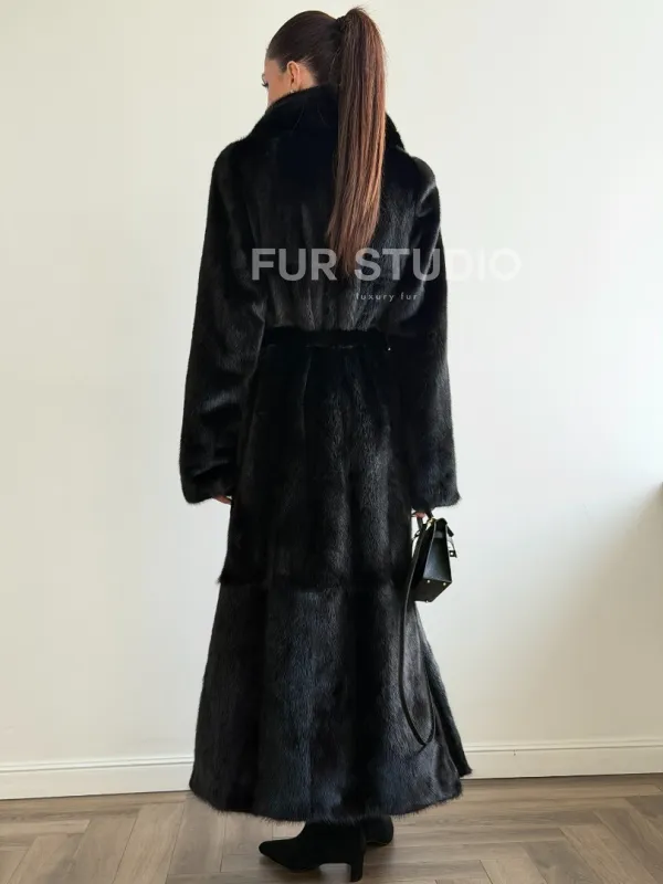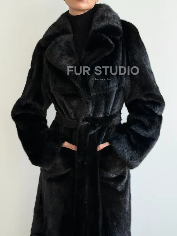 Черная шуба из меха норки - классический стиль 102637