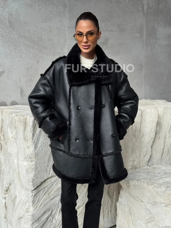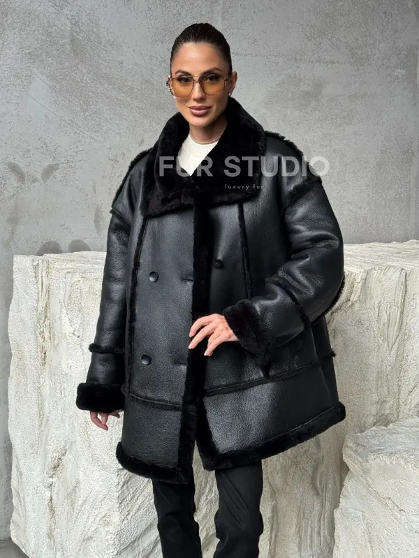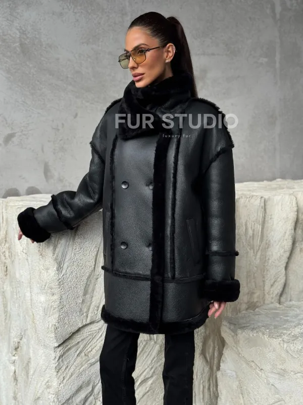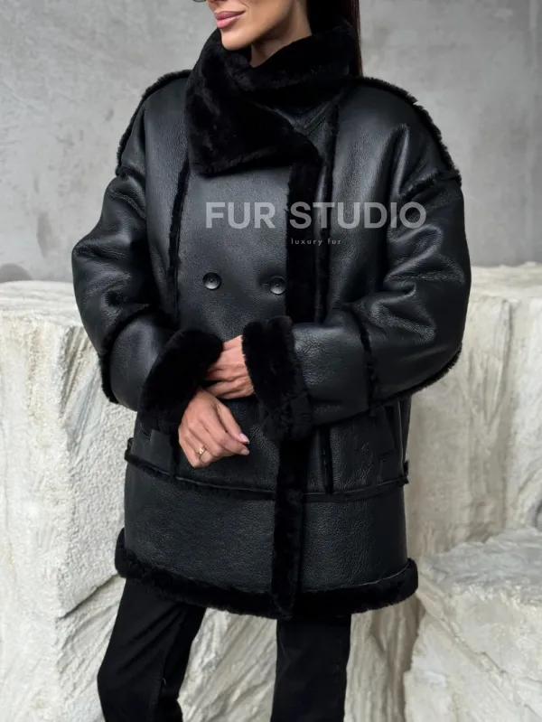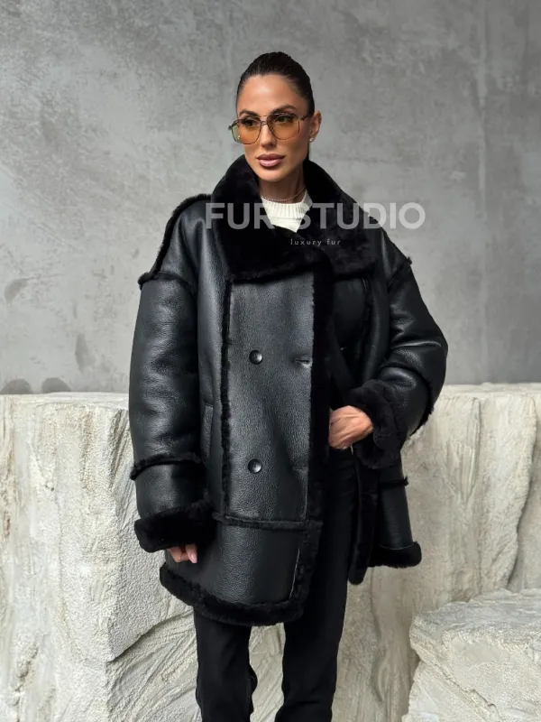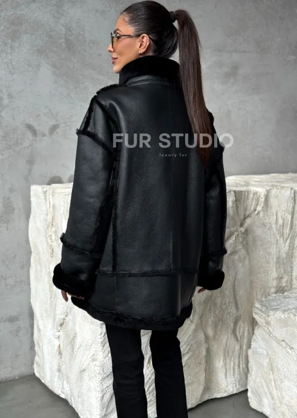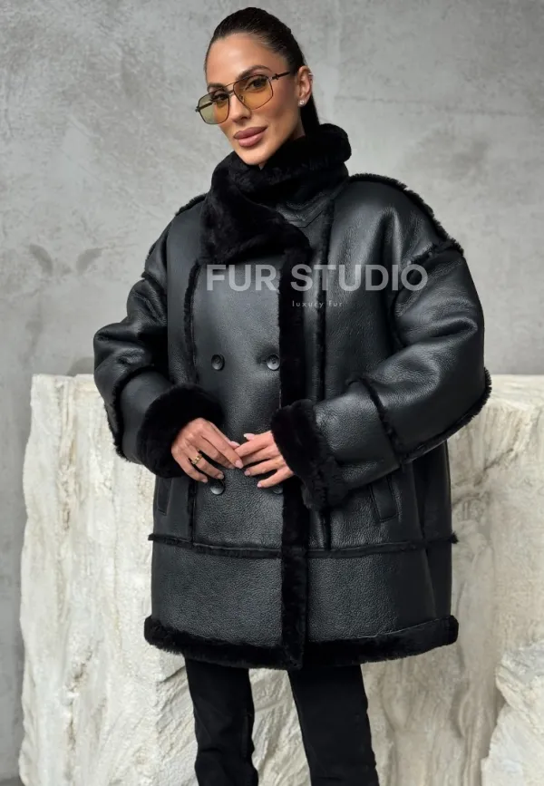 Черная современная дубленка 102392