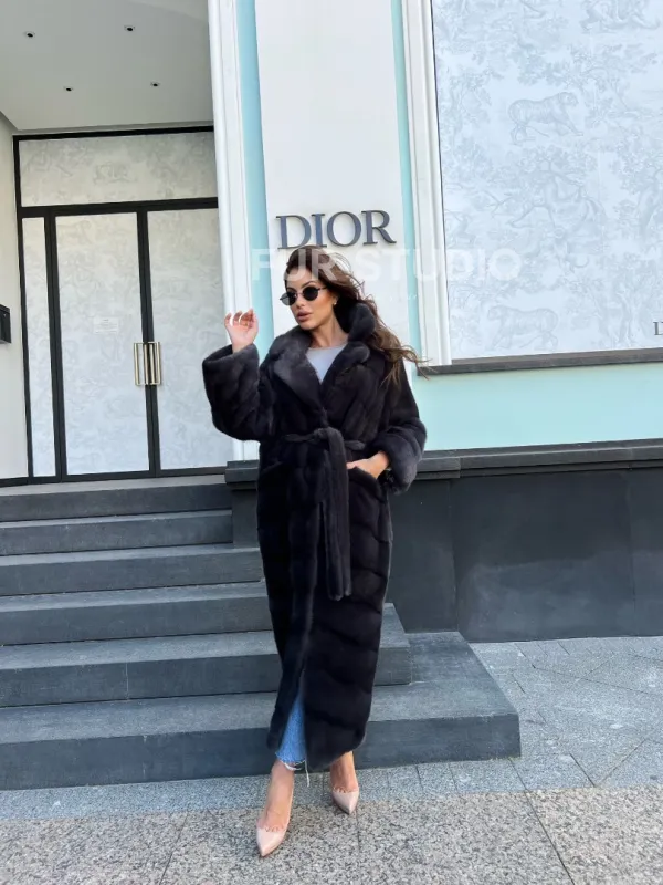 Длинная норковая шуба в цвете графит 100137