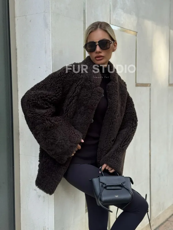 Двусторонняя коричневая дубленка из овчины 102256