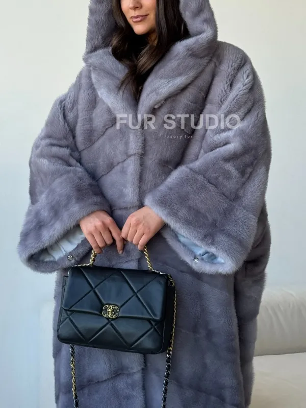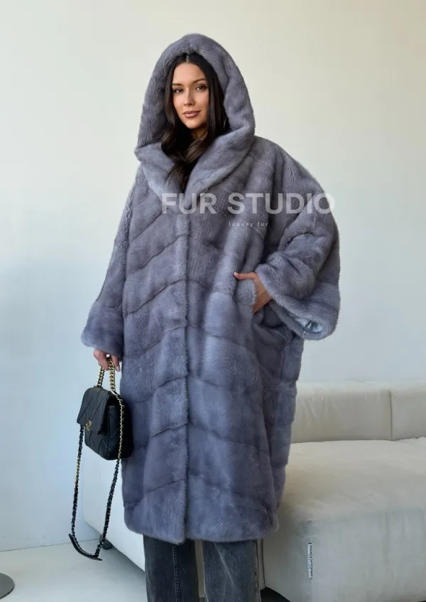 Голубая норковая шуба с капюшоном oversize доступна для покупки в нашем шоуруме Furs Studio в . У нас так же есть доставка во все города России. Добавьте немного роскоши в свой гардероб с этой шубой, которая будет служить вам многие годы.