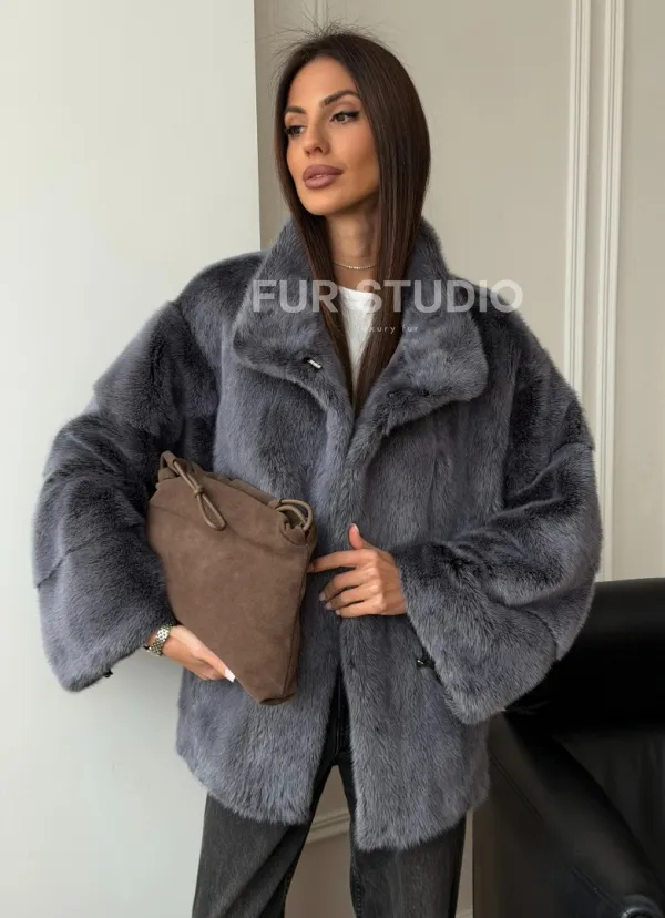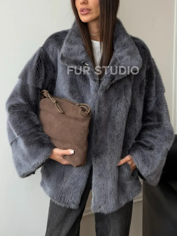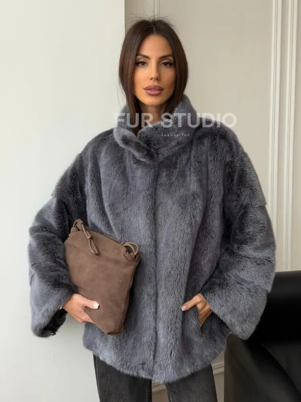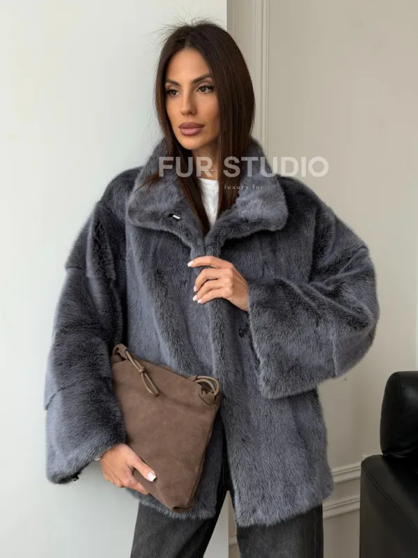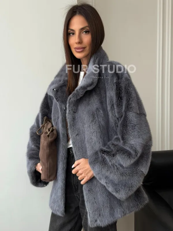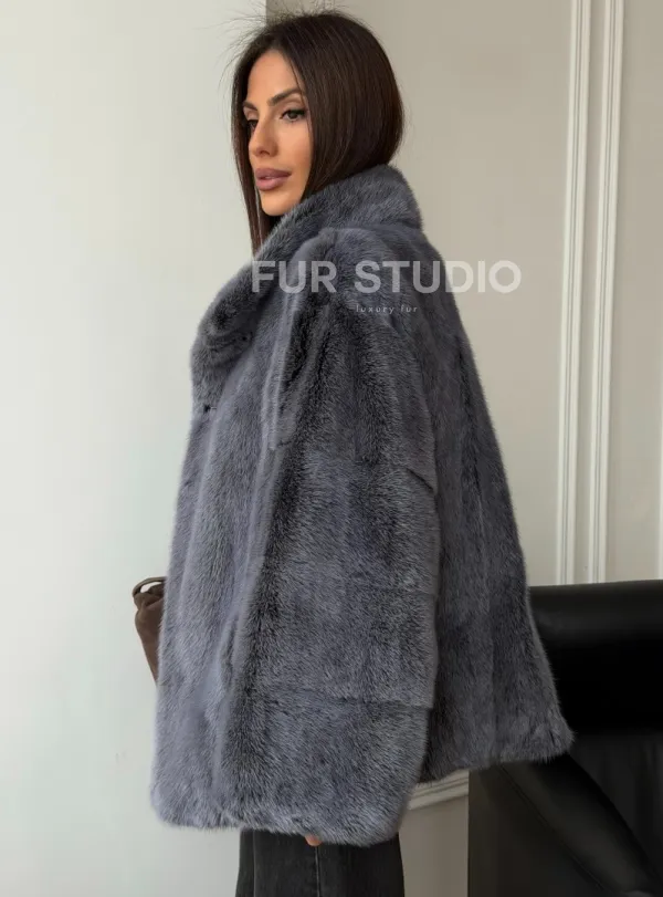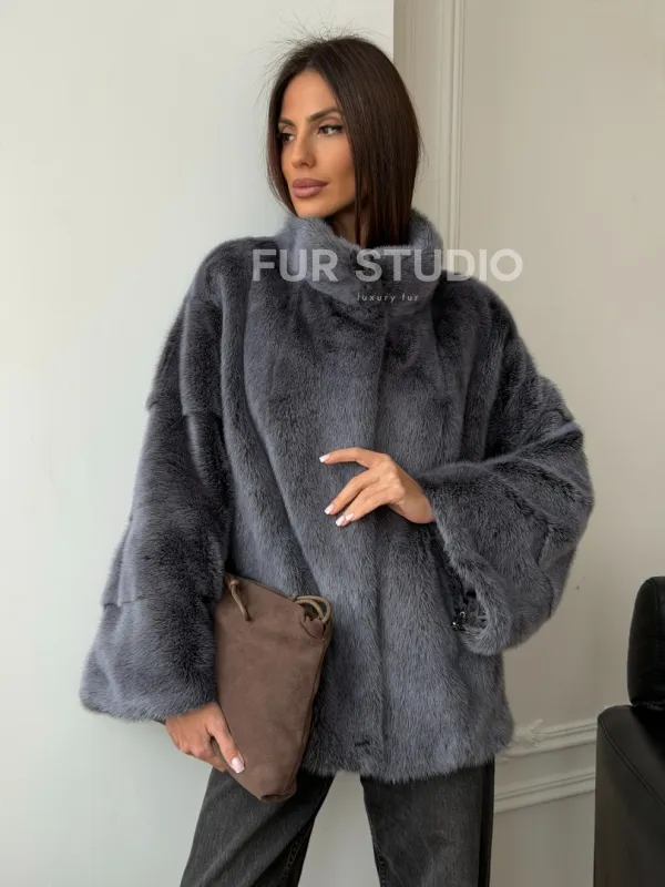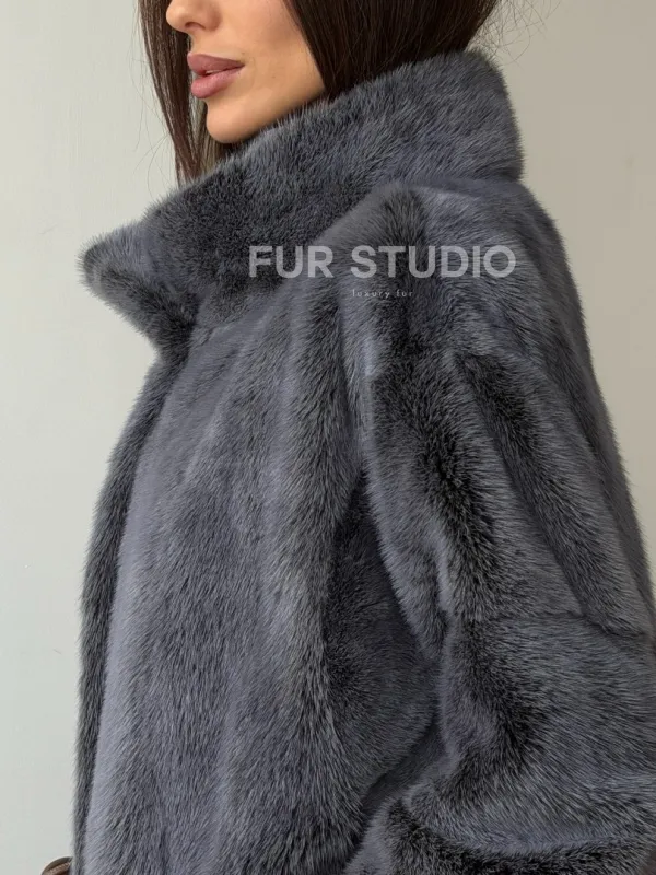 Короткая норковая шуба - стойка воротник 102563