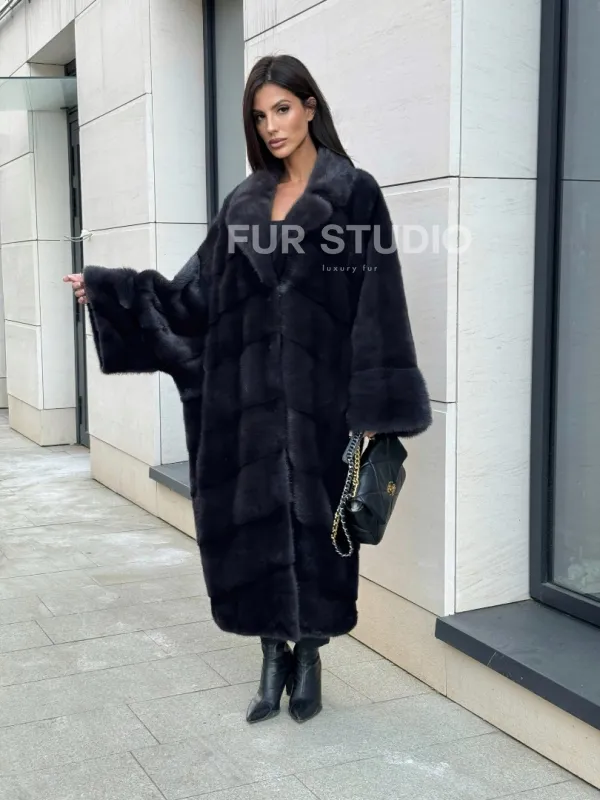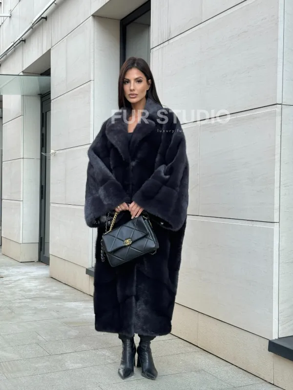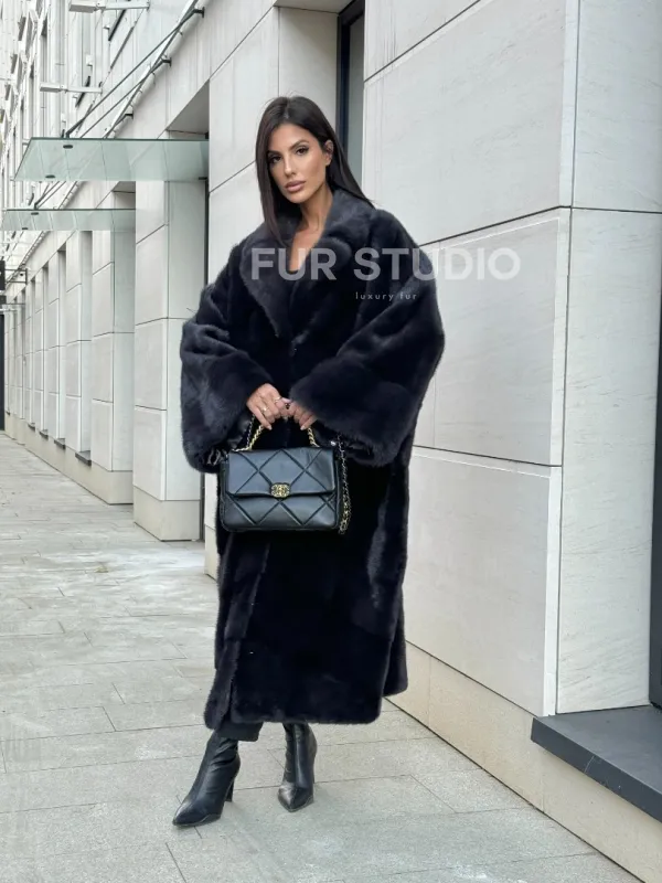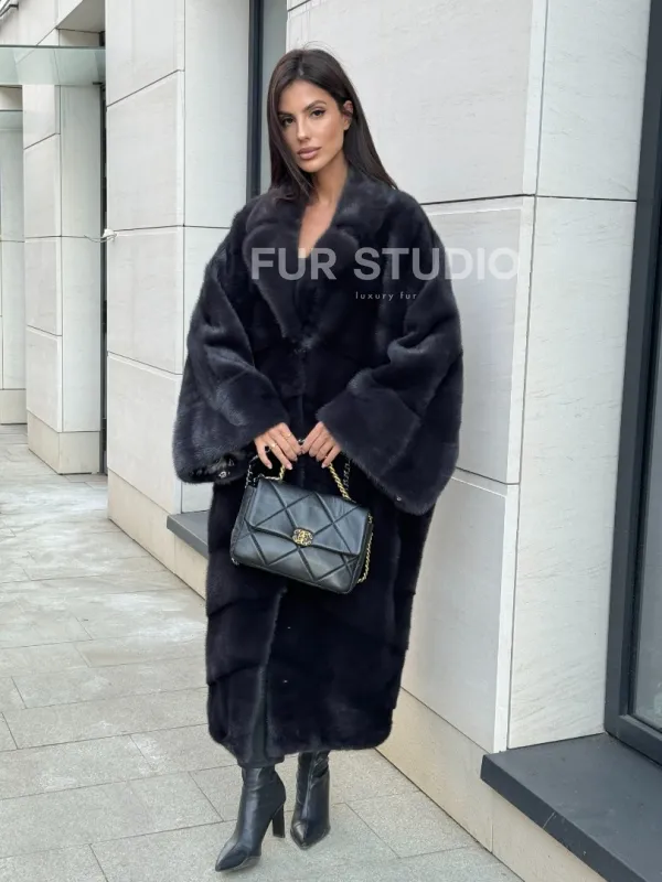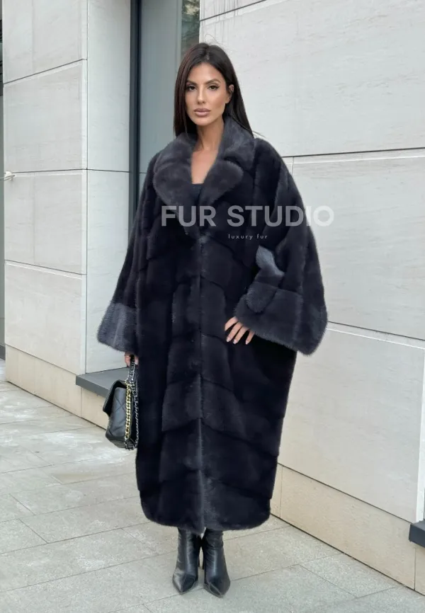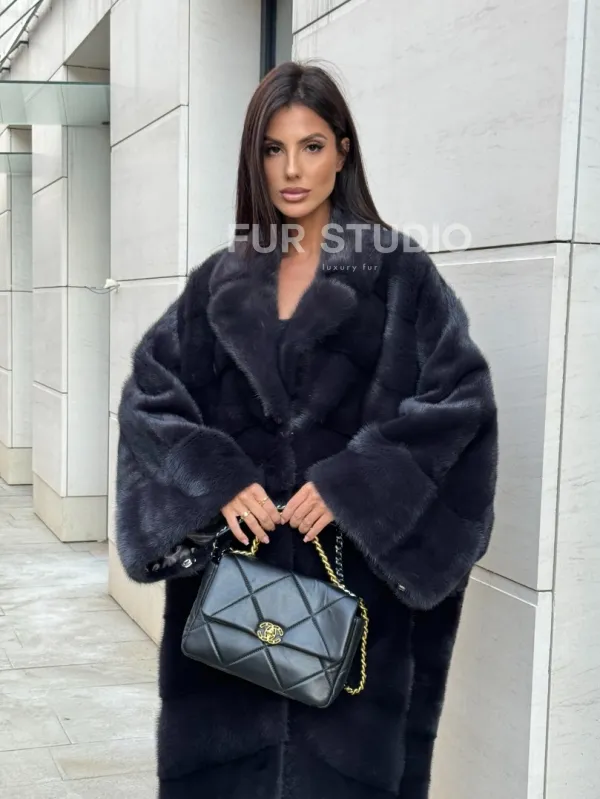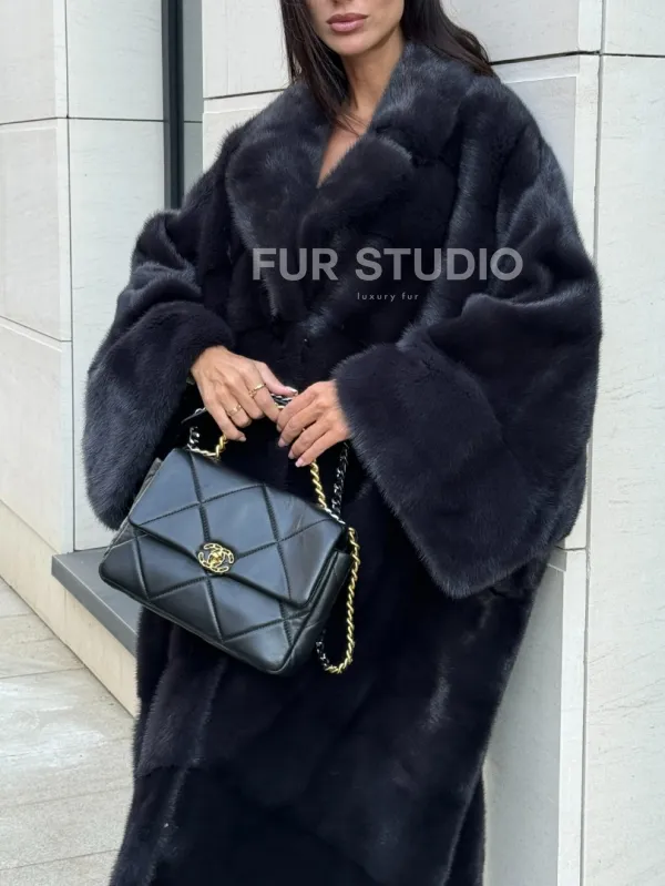 Манто из аукционной норки в цвете графит 100737
