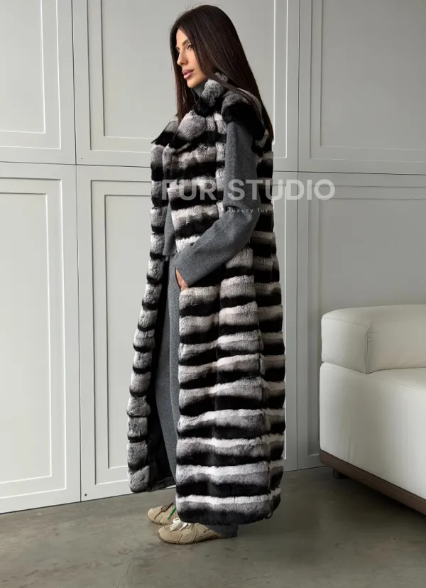 Жилет из меха орилага – отличный вариант для девушек, у кого ограничен бюджет. Изделие никогда не выйдет из моды. Удлиненный жилет зрительно увеличивает рост владелицы. Оригинальная расцветка подчеркнет роскошный оттенок волос и глаз хозяйки. Прямой крой сроет недостатки фигуры. Роскошный воротник позаботится о комфорте шеи и сделает акцент на ее грациозности.