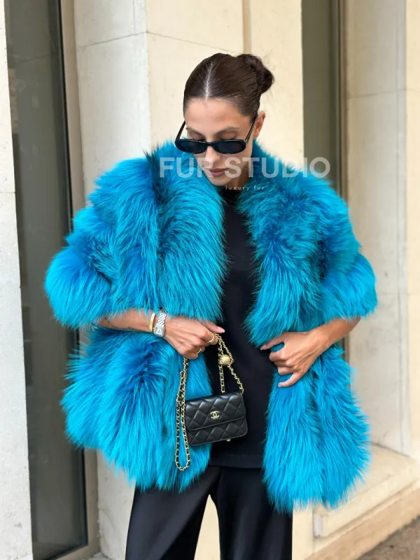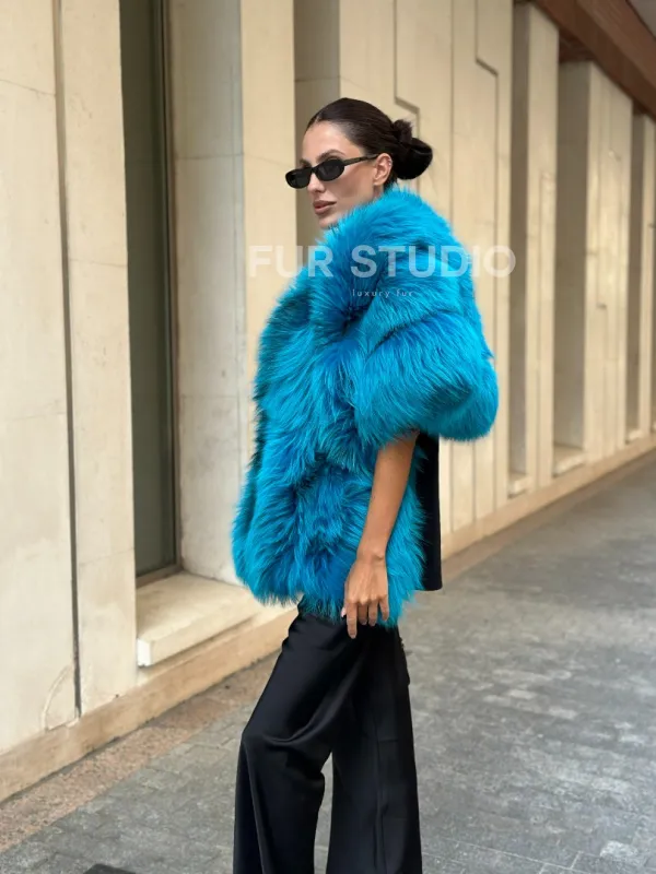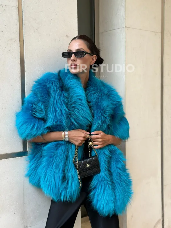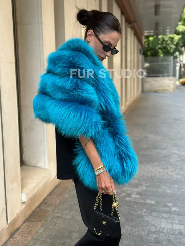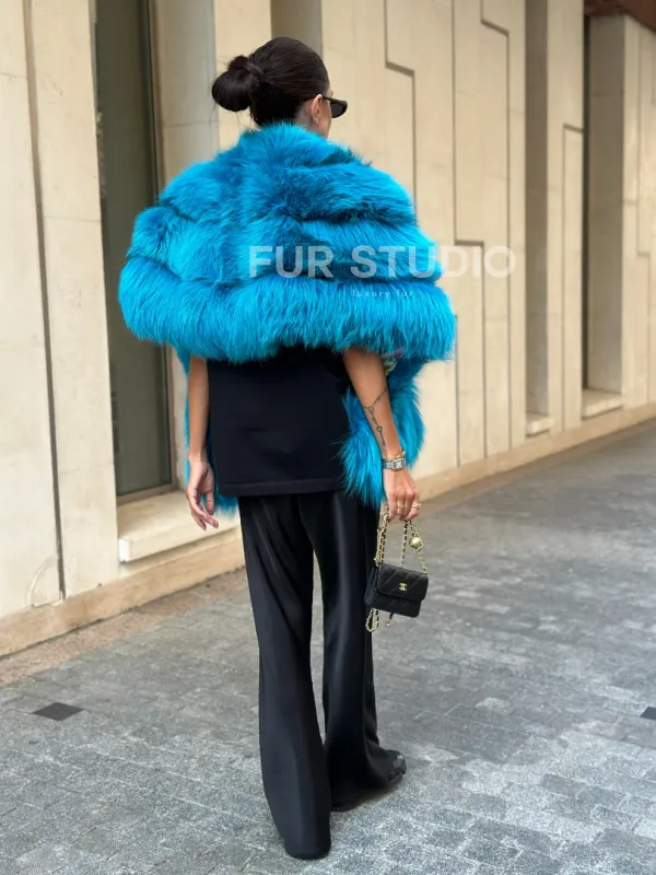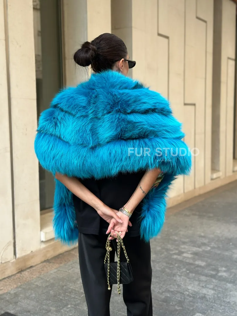 Мех данной накидки, цвет Тиффани предлагается в размерах от 42 до 64.Эта модель идеально подойдет для девушек и женщин, предпочитающих роскошные натуральные меха.
