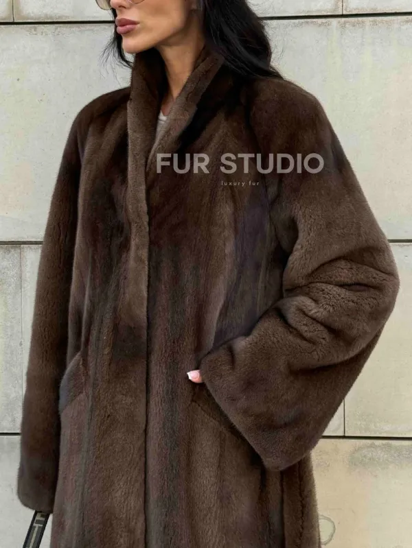 Норковая шуба, цельный мех PREMIUM COLLECTION VELVET - цвет соболь 101011