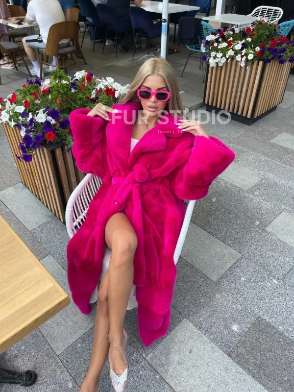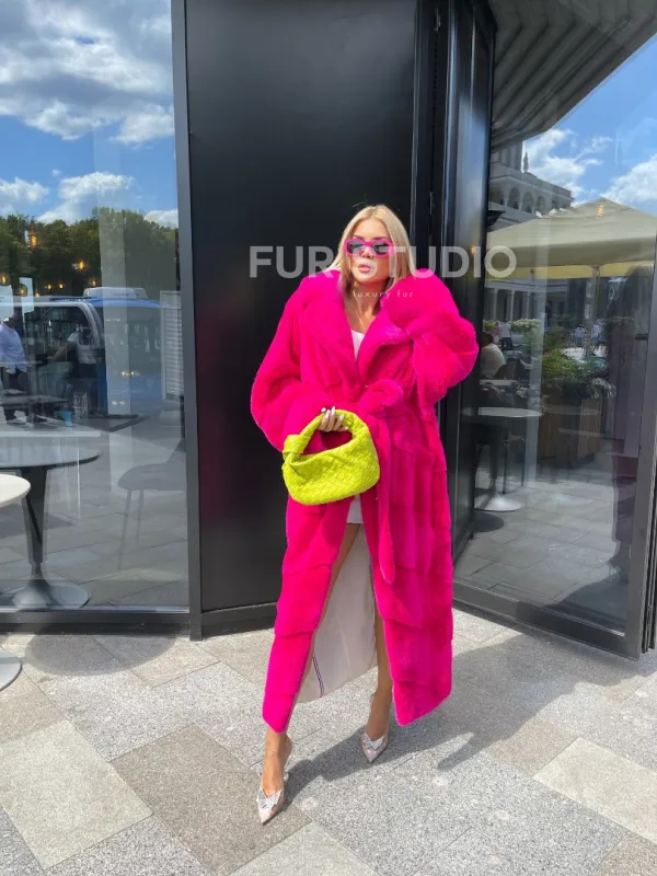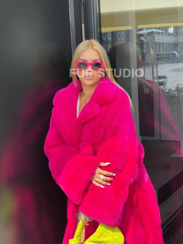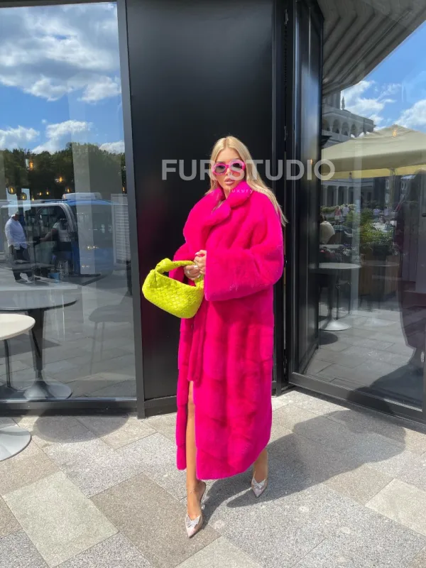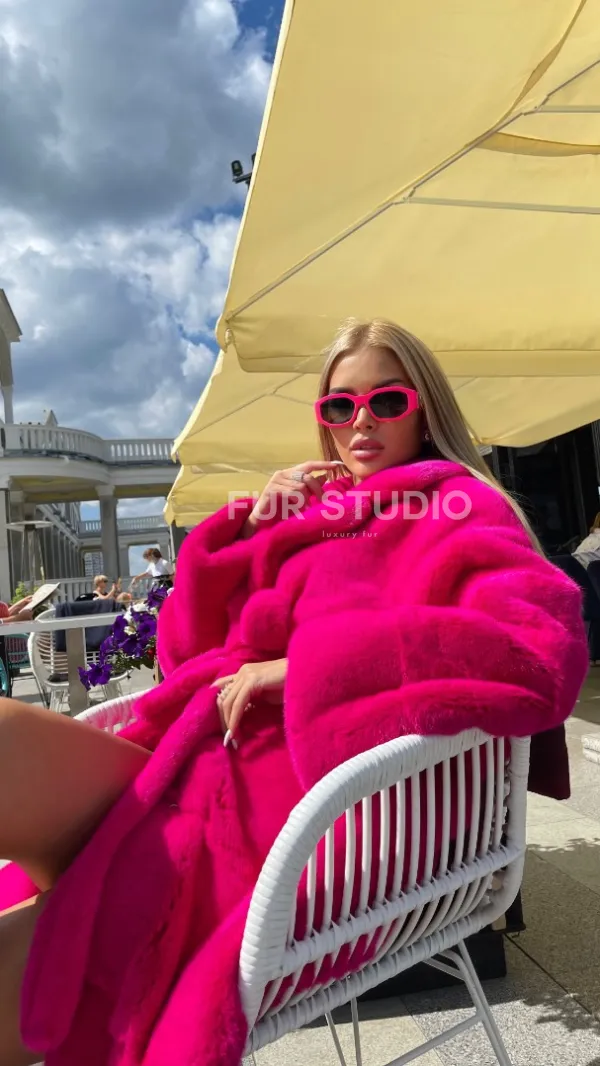 Норковая шуба в цвете фуксия длинная 100102