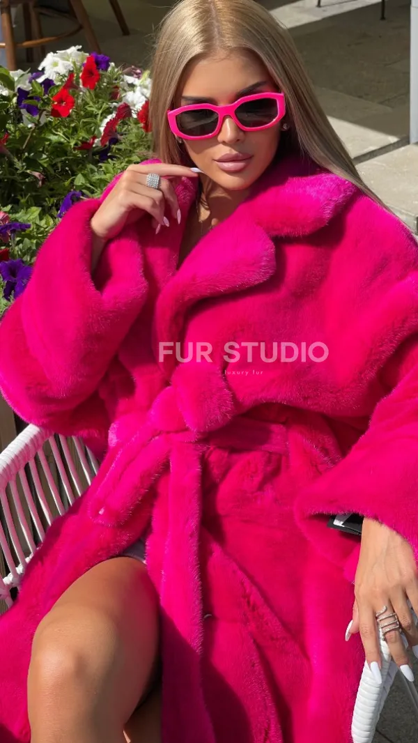 Меховой пояс выгодно очертит талию, подчеркивая ее изящество. Удобный воротник сделает акцент на изгибах шеи. Широкие манжеты подчеркивают тонкость кистей. Добавьте в образ оригинальную сумочку, и вы будете выглядеть великолепно. Купить норковую шубу в цвете фуксия могут позволить девушки, которые любят экспериментировать и удивлять.