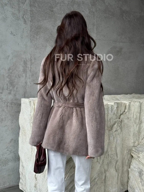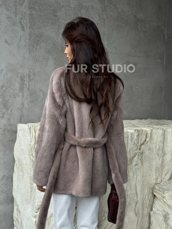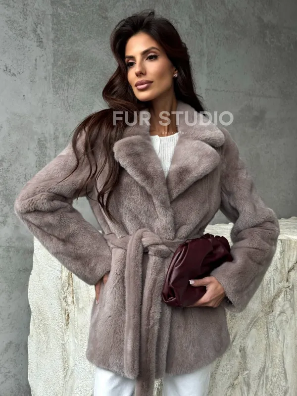 Норковая шуба - жакет с поясом 102488
