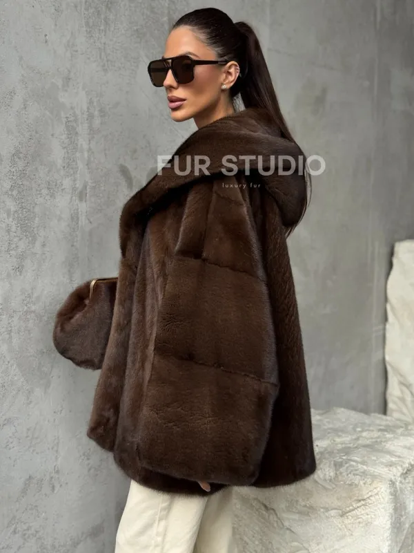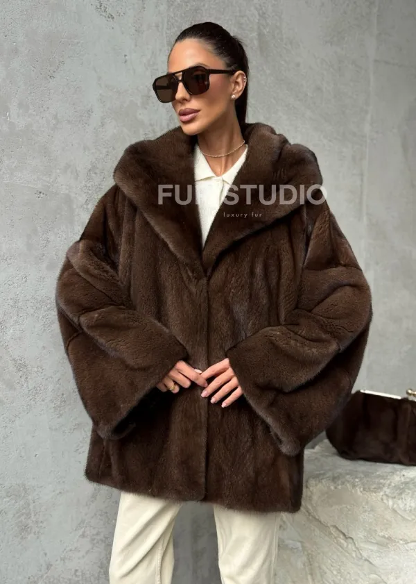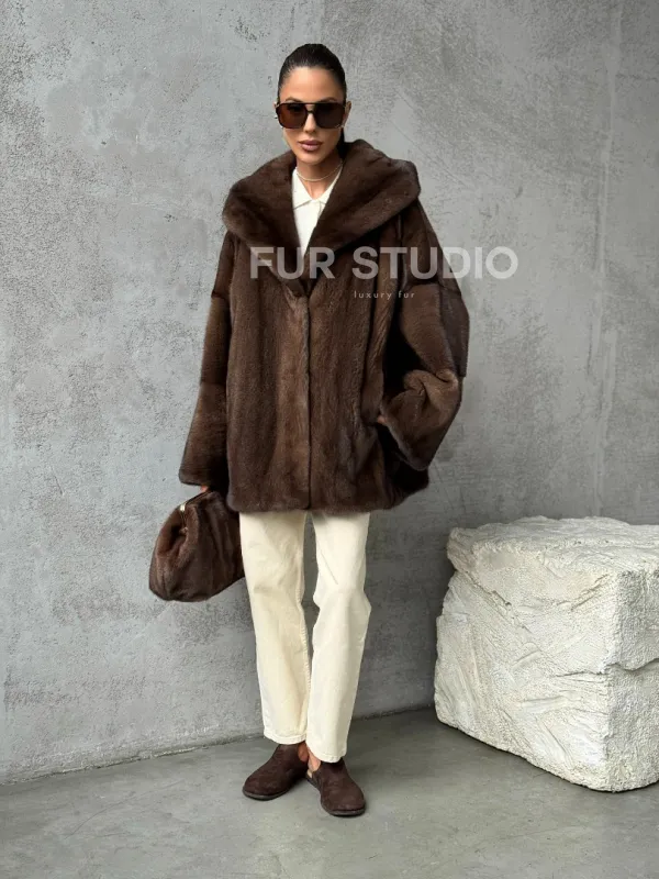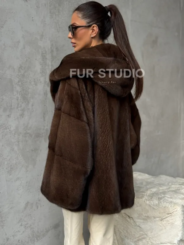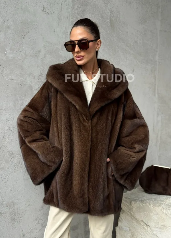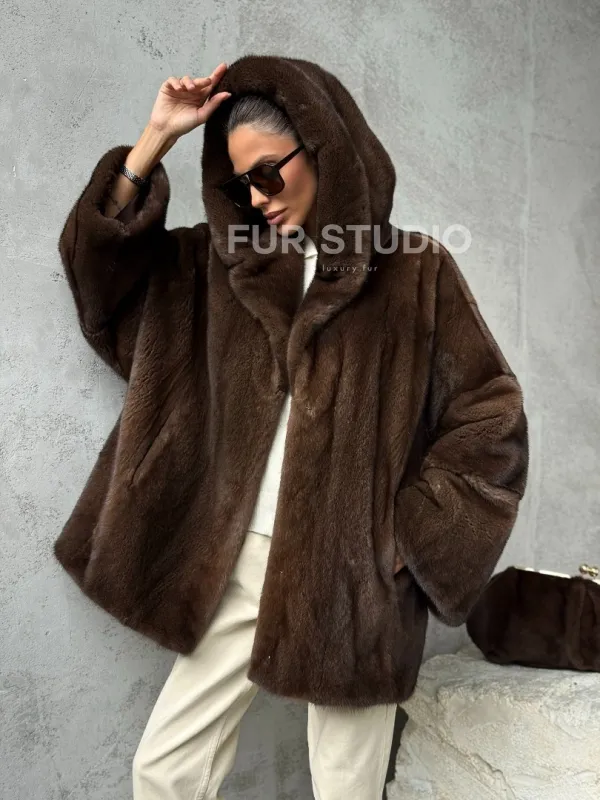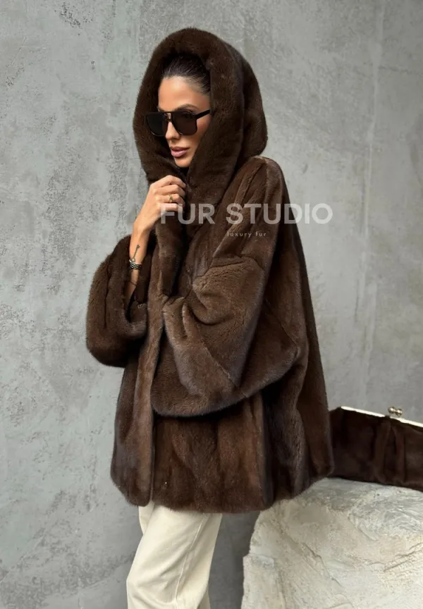 Норковый полушубок с капюшоном - цвет коричневый доступна для покупки в нашем шоуруме Furs Studio в . У нас так же есть доставка во все города России. Добавьте немного роскоши в свой гардероб с этой шубой, которая будет служить вам многие годы.