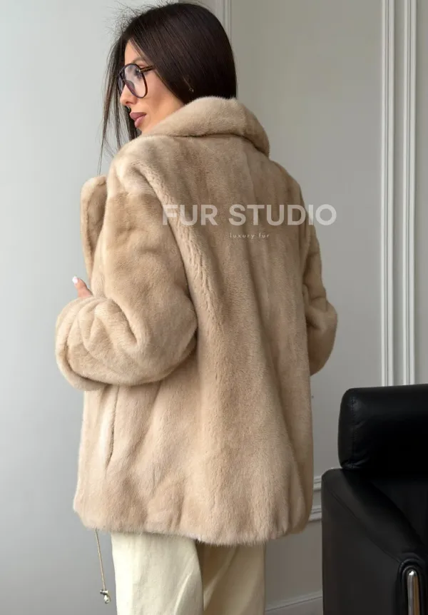 Норковый полушубок в натуральном цвете пастель 102297