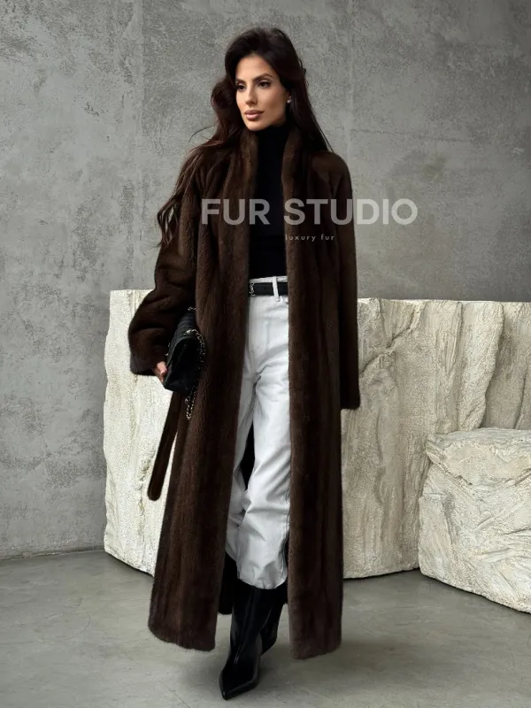 Мех данной шубы аукционная норка, цвет коричневый. Предлагается в размерах от 42 до 50. Длина модели 125-130 см, что выгодно подчеркивает фигуру девушек. Эта модель идеально подойдет для девушек и женщин, предпочитающих роскошные натуральные меха.