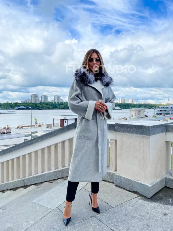 Пальто из шерсти альпаки с воротником блюфрост идеальный выбор для дам, знающих себе цену. Шерсть альпаки согреет в непогоду. Материал приятен на ощупь и практически не ощущается на теле. Воротник из редкого меха выгодно подчеркнет изящную шею и не даст ей замерзнуть в прохладную погоду. Благородный цвет отлично подойдет обладательницам любого оттенка волос.