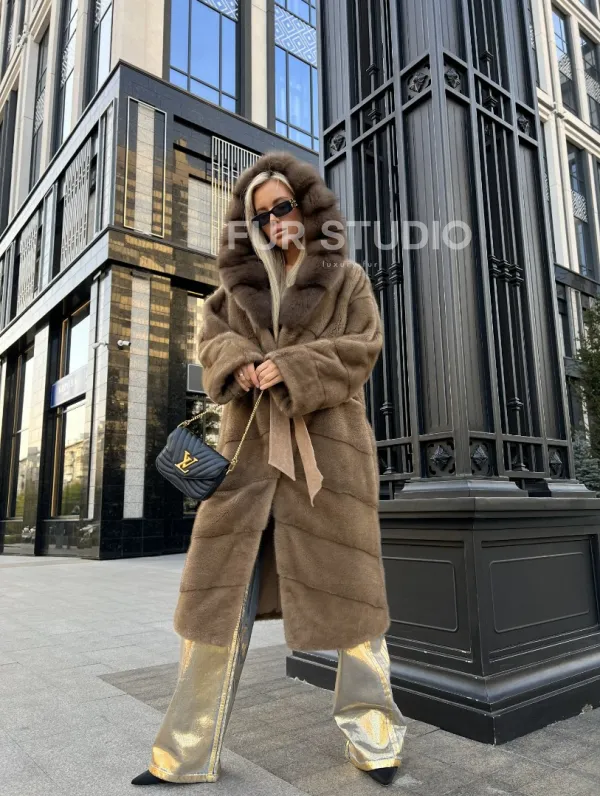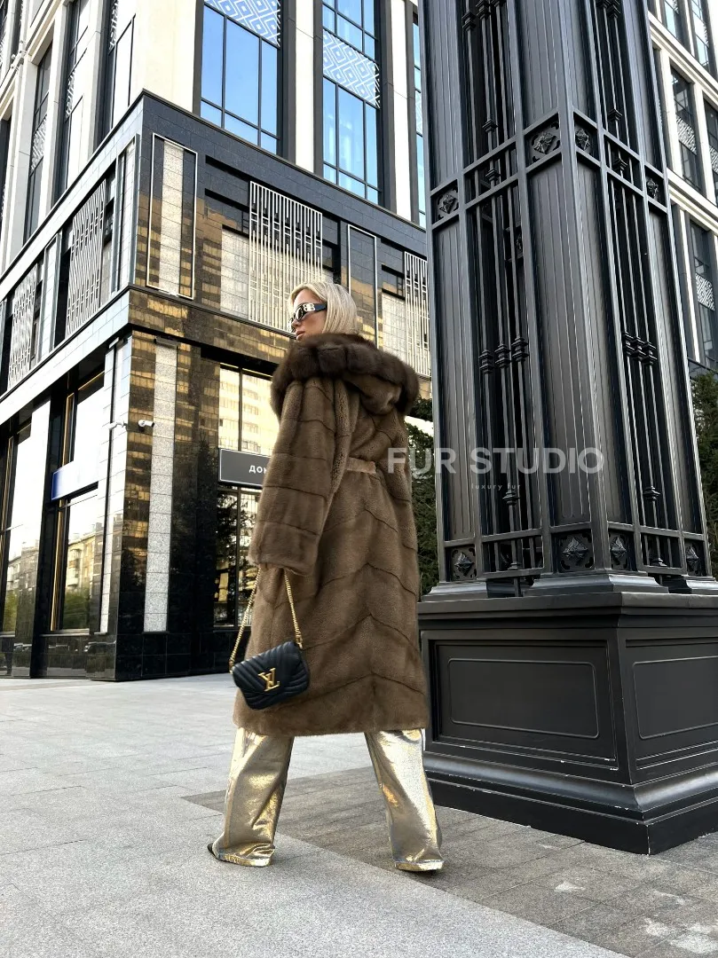 Пастель норковая шуба из меха NAFA капюшон куница доступна для покупки в нашем шоуруме Furs Studio в . У нас так же есть доставка во все города России. Добавьте немного роскоши в свой гардероб с этой шубой, которая будет служить вам многие годы.