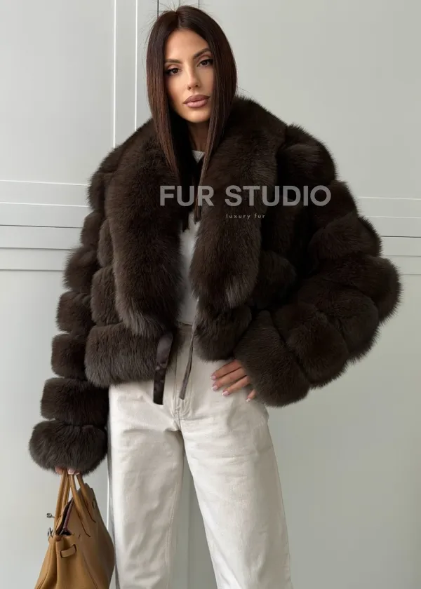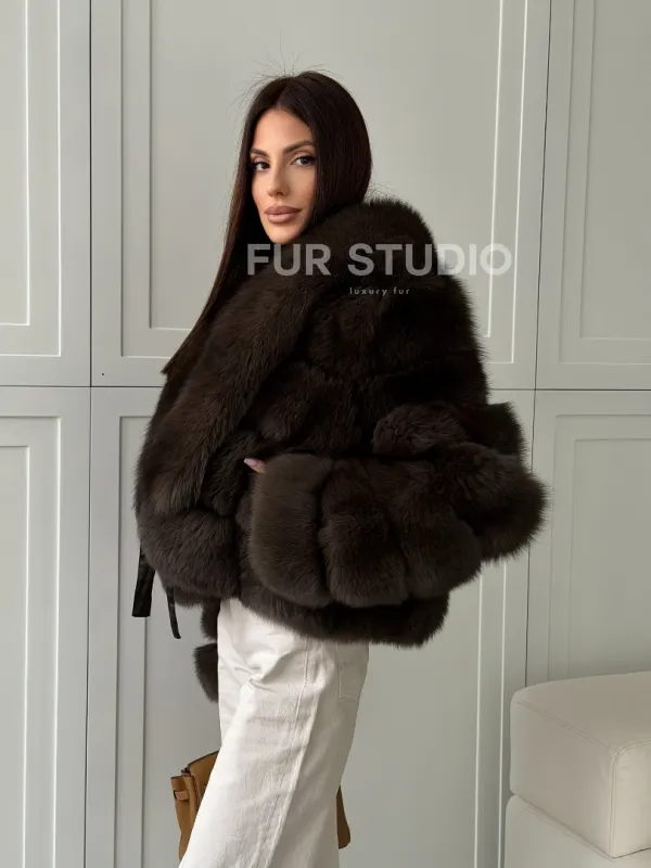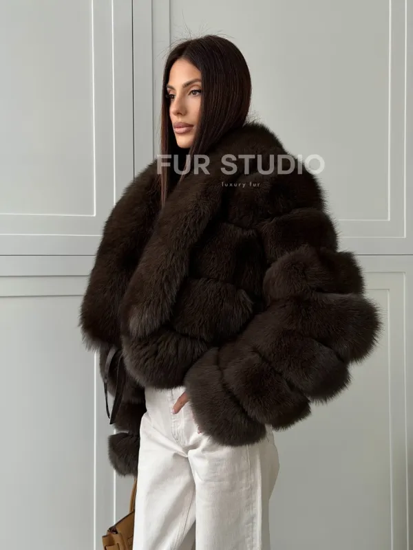 Мех данной шубы финский песец, цвет коричневый. Предлагается в размерах от 42 до 48. Длина модели 50-55 см, что выгодно подчеркивает фигуру девушек. Эта модель идеально подойдет для девушек и женщин, предпочитающих роскошные натуральные меха.