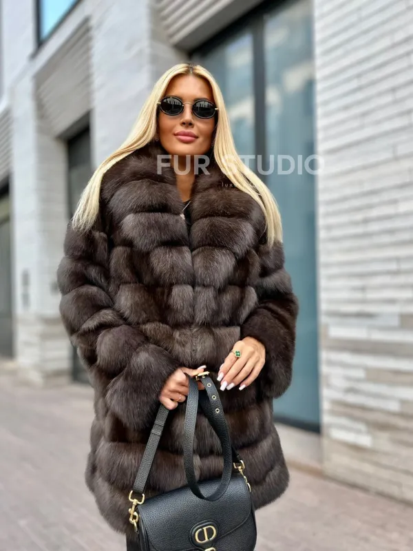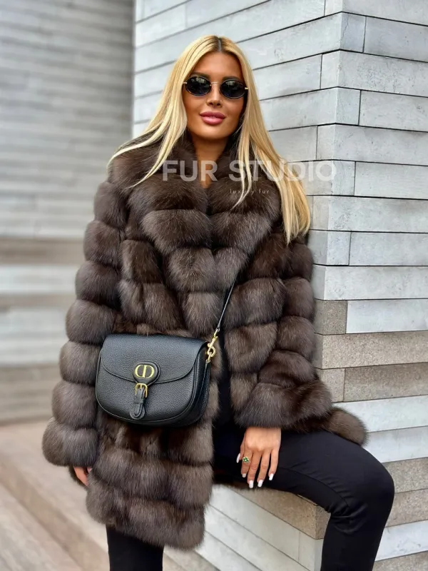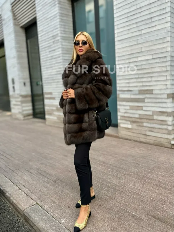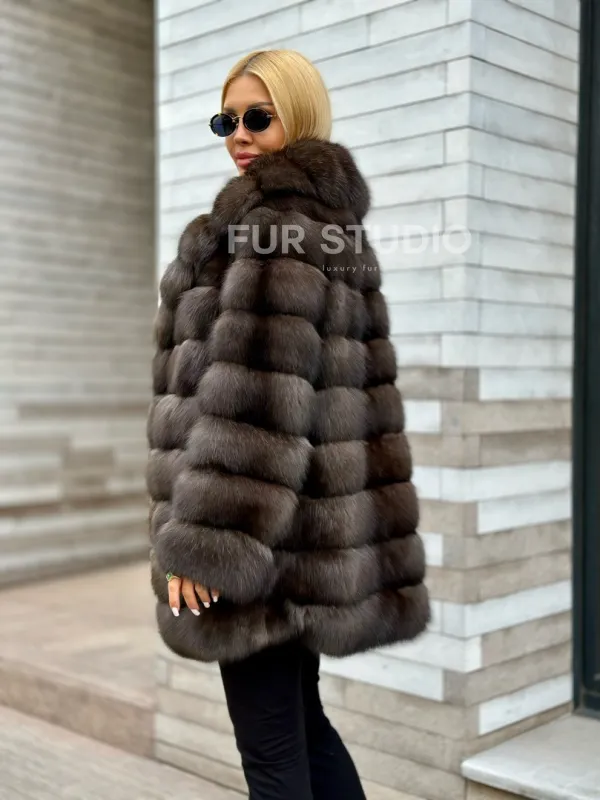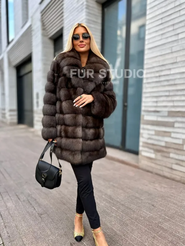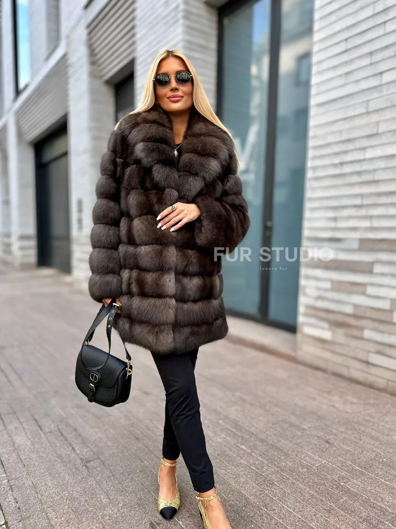 Посетите наш шоурум студии меха Fur Studio в Москве, чтобы купить модный меховой жакет из соболя с воротником шалью. Классический полушубок также можно заказать с доставкой, с оплатой после примерки.