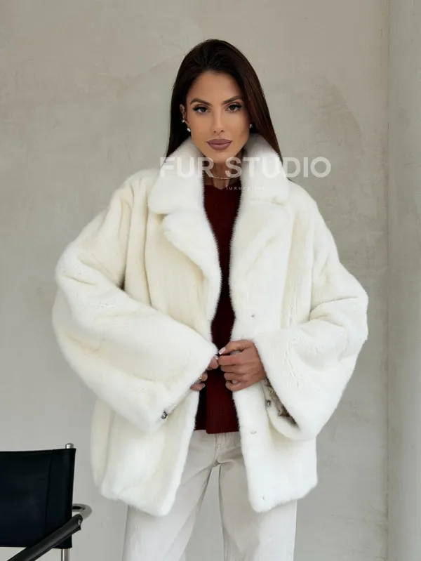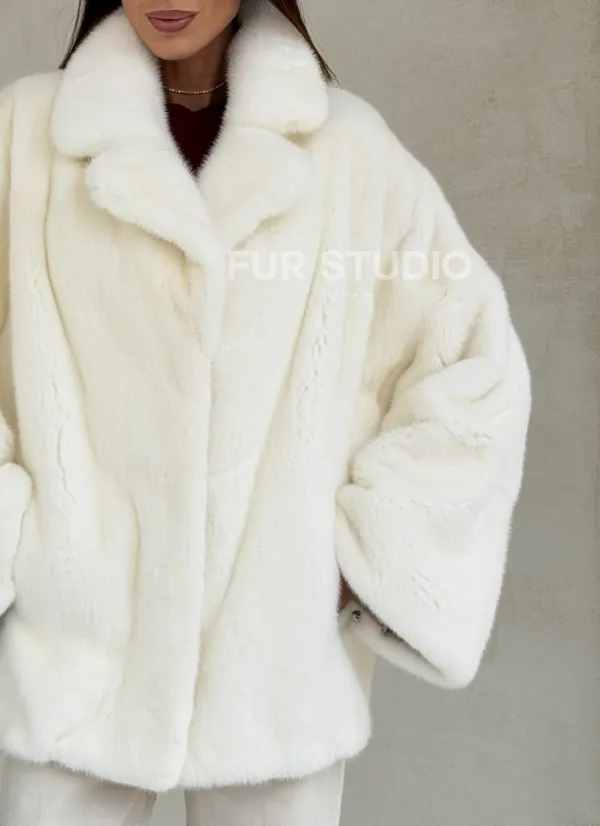 Шуба автоледи из белой норки NAFA MINK - роспуск 101004