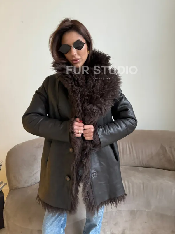 Шуба - дубленка из натуральной овчины (двусторонняя) доступна для покупки в нашем шоуруме Furs Studio в , а также предлагается удобная доставка во все города России. Обогатите свой гардероб этой дубленкой, которая прослужит вам многие годы, добавив немного роскоши в ваш повседневный образ.