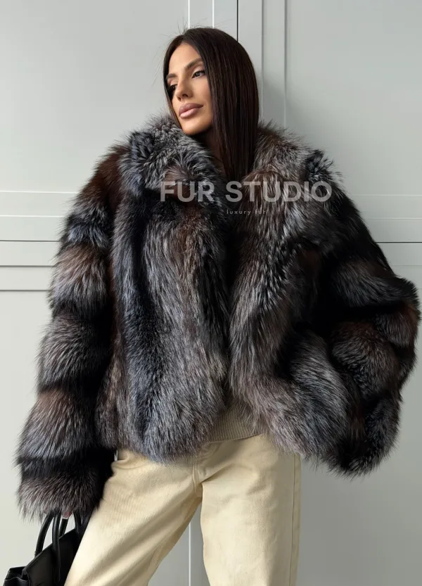 Мех данной шубы лиса, цвет серый. Предлагается в размерах от 40 до 48. Длина модели 55-60 см, что выгодно подчеркивает фигуру девушек. Эта модель идеально подойдет для девушек и женщин, предпочитающих роскошные натуральные меха.