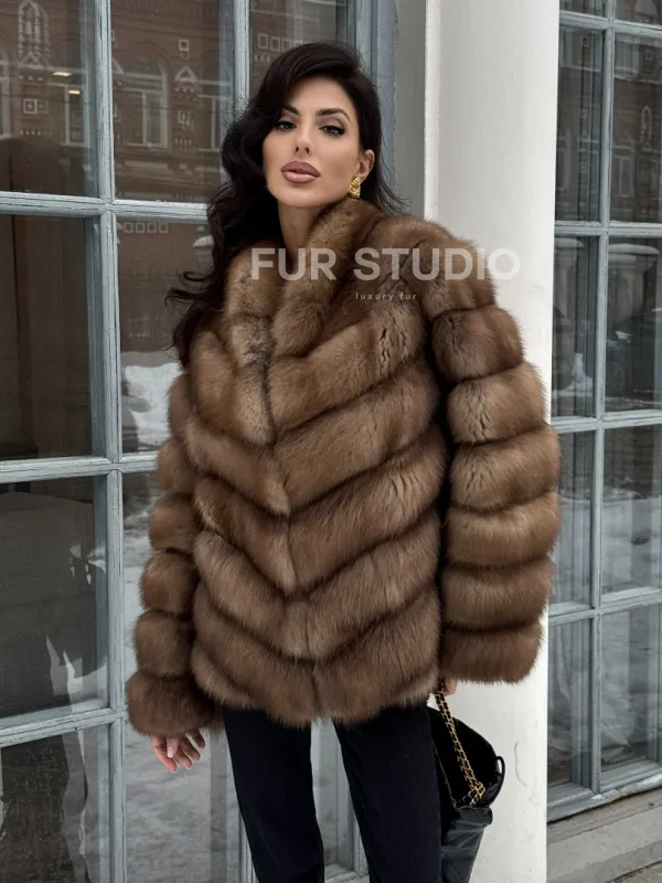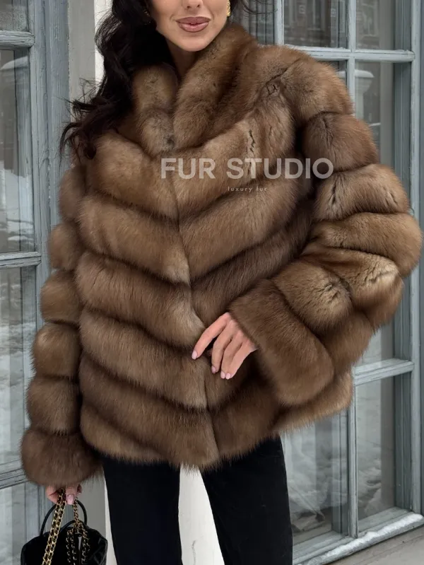 Шуба из меха куницы с V-образным воротником доступна для покупки в нашем шоуруме Furs Studio в . У нас так же есть доставка во все города России. Добавьте немного роскоши в свой гардероб с этой шубой, которая будет служить вам многие годы.