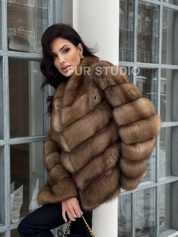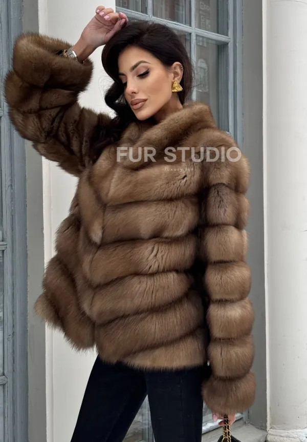 Мех данной шубы лесная куница, цвет натуральный. Предлагается в размерах от 42 до 46. Длина модели 60-65 см, что выгодно подчеркивает фигуру девушек. Эта модель идеально подойдет для девушек и женщин, предпочитающих роскошные натуральные меха.