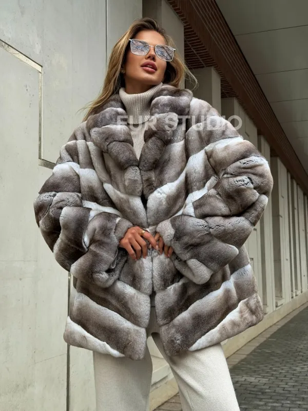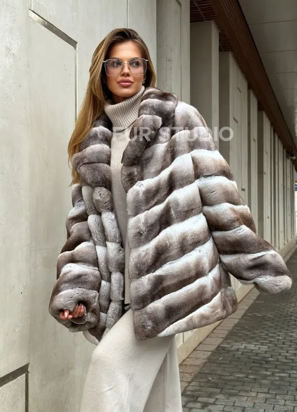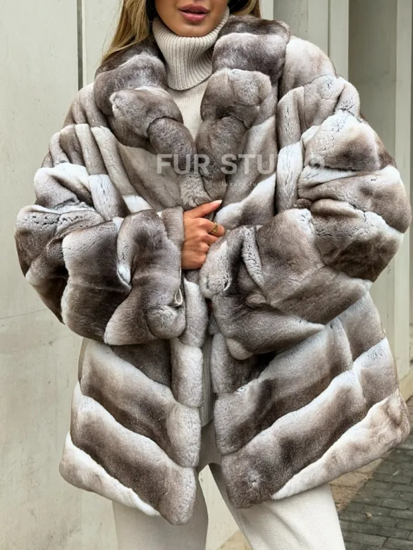 Шуба из меха шиншиллового кролика PREMIUM COLLECTION доступна для покупки в нашем шоуруме Furs Studio в . У нас так же есть доставка во все города России. Добавьте немного роскоши в свой гардероб с этой шубой, которая будет служить вам многие годы.