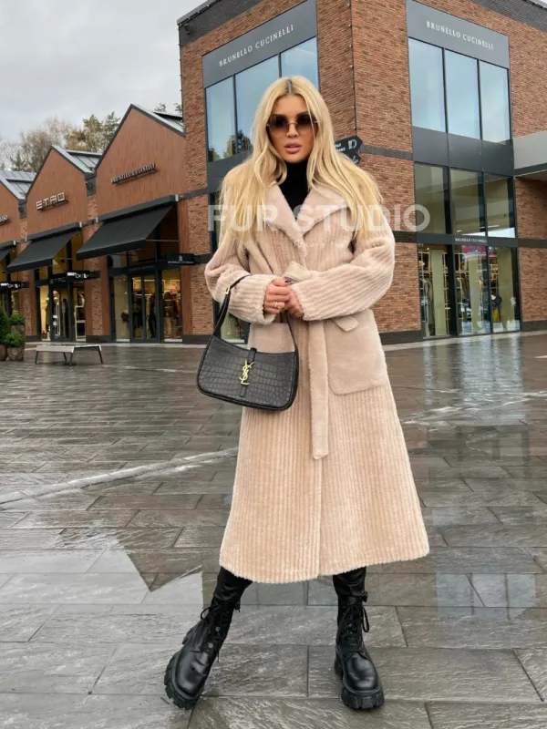 Шуба из натуральной шерсти в бежевом оттенке 100192