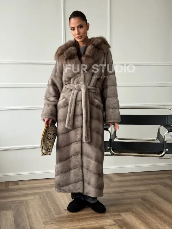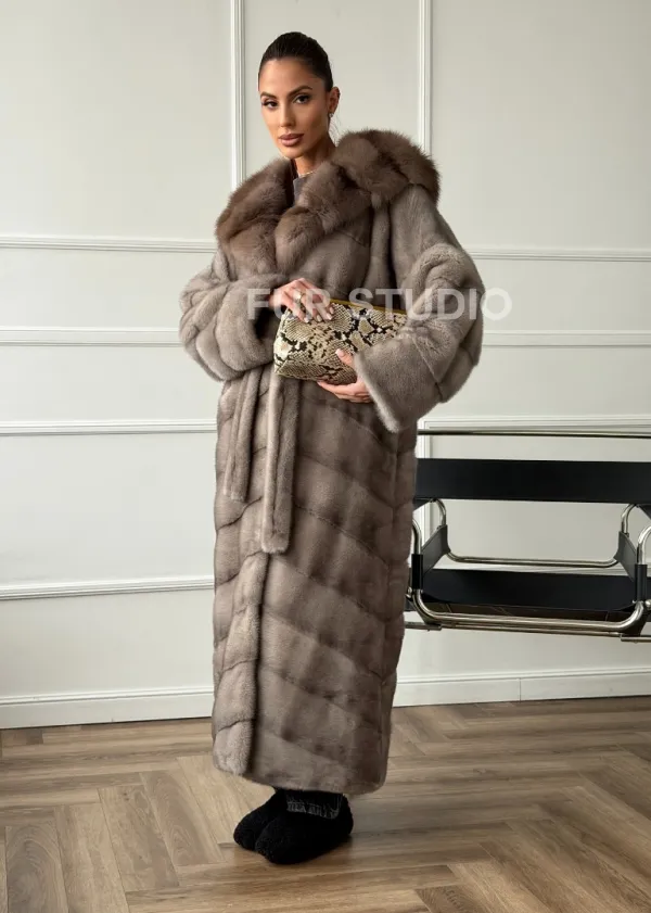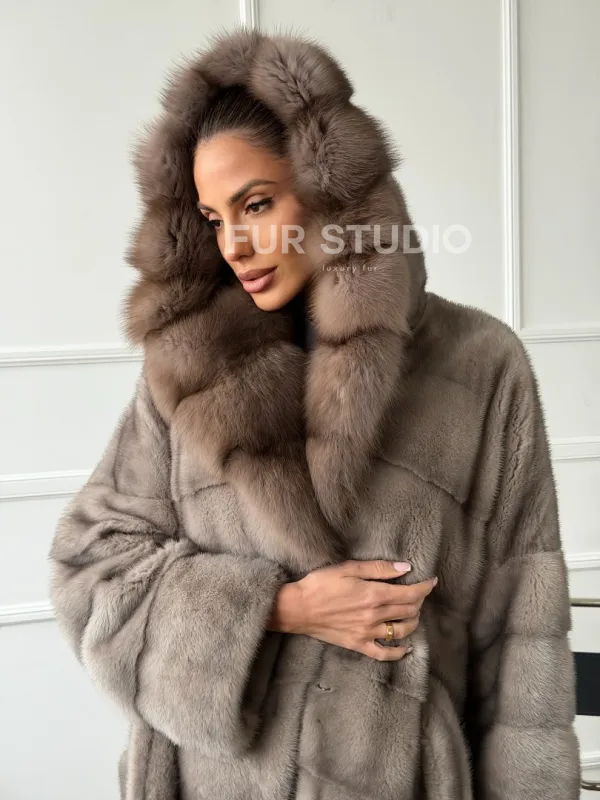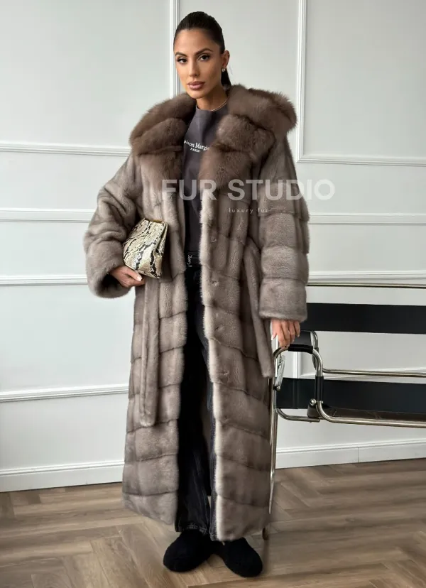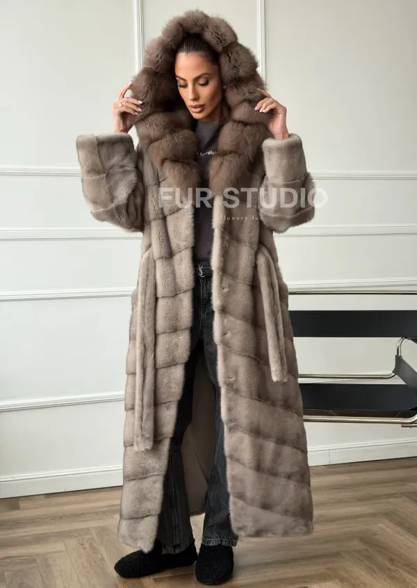 Шуба-кимоно норка в пол с капюшоном куница доступна для покупки в нашем шоуруме Furs Studio в . У нас так же есть доставка во все города России. Добавьте немного роскоши в свой гардероб с этой шубой, которая будет служить вам многие годы.