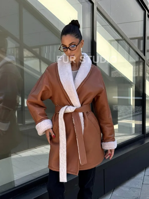 Женская дублёнка на запах с поясом - цвет кэмел доступна для покупки в нашем шоуруме Furs Studio в , а также предлагается удобная доставка во все города России. Обогатите свой гардероб этой дубленкой, которая прослужит вам многие годы, добавив немного роскоши в ваш повседневный образ.